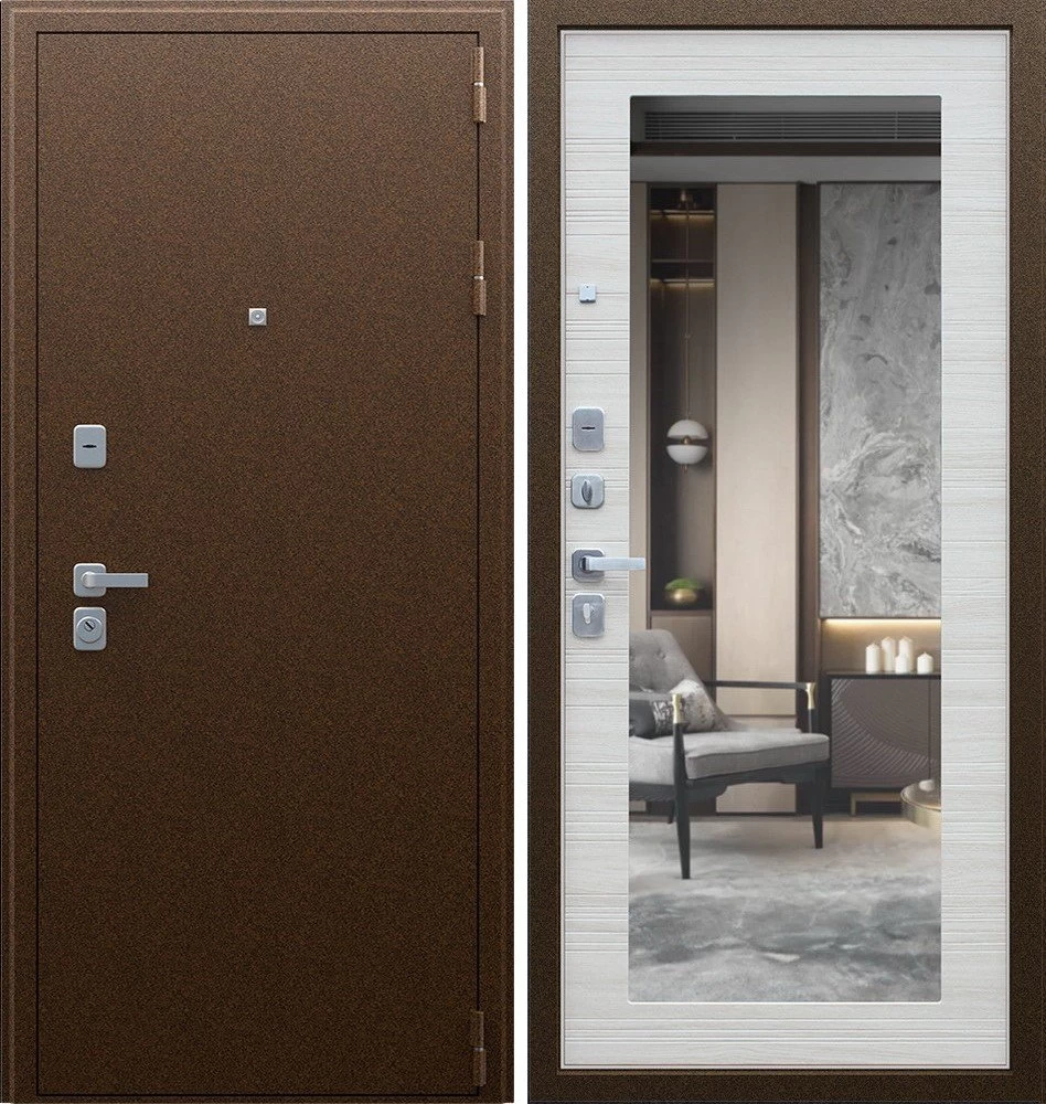 Надежная входная Дверь Спартак с зеркалом Акация Светлая Поперечная премиум класса по цене 37 603 руб. Большая толщина стали защитит от проникновения в ваш дом, квартиру или коттедж. Используется очень качественная фурнитура: замки, цилиндры, ручки, защелки. Покрытие и отделка двери изготовлено под внимательным контролем производителя. Дверь имеет долгий срок службы и гарантию.