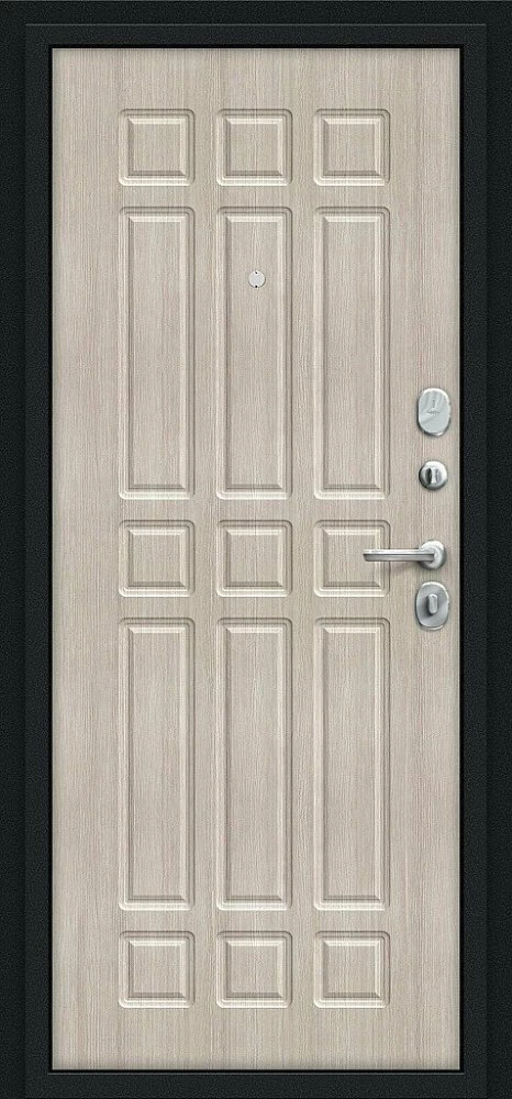 Надежная входная Дверь Браво Мило Букле черное/Cappuccino Veralinga премиум класса по цене 30 853 руб. Большая толщина стали защитит от проникновения в ваш дом, квартиру или коттедж. Используется очень качественная фурнитура: замки, цилиндры, ручки, защелки. Покрытие и отделка двери изготовлено под внимательным контролем производителя. Дверь имеет долгий срок службы и гарантию.