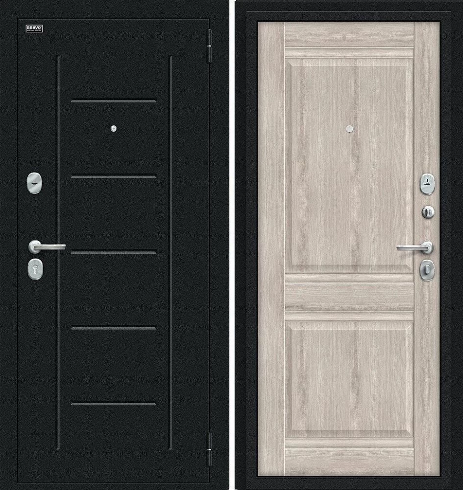 Надежная входная Дверь Браво Некст Kale Букле черное/Cappuccino Veralinga премиум класса по цене 36 773 руб. Большая толщина стали защитит от проникновения в ваш дом, квартиру или коттедж. Используется очень качественная фурнитура: замки, цилиндры, ручки, защелки. Покрытие и отделка двери изготовлено под внимательным контролем производителя. Дверь имеет долгий срок службы и гарантию.