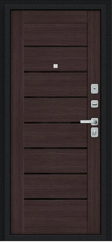 Надежная входная Дверь Браво Техно/BChrome Букле черное/Wenge Melinga премиум класса по цене 34 203 руб. Большая толщина стали защитит от проникновения в ваш дом, квартиру или коттедж. Используется очень качественная фурнитура: замки, цилиндры, ручки, защелки. Покрытие и отделка двери изготовлено под внимательным контролем производителя. Дверь имеет долгий срок службы и гарантию.