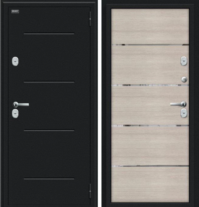Надежная входная Дверь Браво Thermo Лайн Букле черное/Cappuccino Veralinga премиум класса по цене 48 953 руб. Большая толщина стали защитит от проникновения в ваш дом, квартиру или коттедж. Используется очень качественная фурнитура: замки, цилиндры, ручки, защелки. Покрытие и отделка двери изготовлено под внимательным контролем производителя. Дверь имеет долгий срок службы и гарантию.