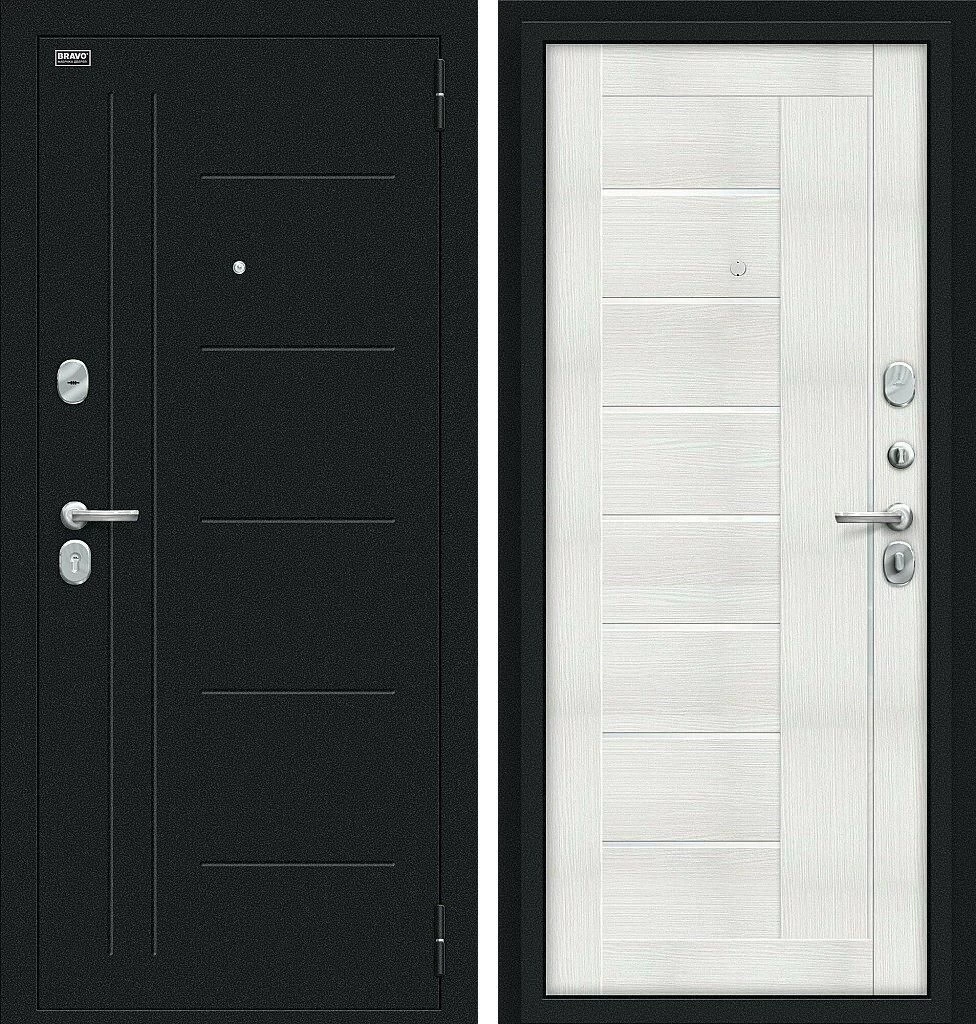 Надежная входная Входная дверь Проф Букле черное/Bianco Veralinga BR4547 премиум класса по цене 34 585 руб. Большая толщина стали защитит от проникновения в ваш дом, квартиру или коттедж. Используется очень качественная фурнитура: замки, цилиндры, ручки, защелки. Покрытие и отделка двери изготовлено под внимательным контролем производителя. Дверь имеет долгий срок службы и гарантию.
